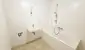 Das Bad mit Badewanne und Waschmaschinenanschluss ist zeitlos weiß verfließt. Das große Vorzimmer und der Abstellraum bieten viel Stauraum. Ein separates Gäste-WC ist ebenfalls vorhanden.