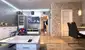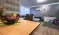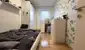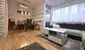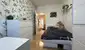 Durch das Wohnzimmer gelangt man auf die Loggia, die auf den Innenhof ausblickt und die Küche mit allen dazugehörigen Geräten (Backofen, Herdplatte, Geschirrspüler).
