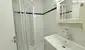 ein Badezimmer mit Dusche und Handwaschbecken, Fußbodenheizung in beiden Bädern