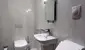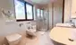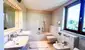 Das größere der beiden Bäder ist mit einem großen Tageslichtfenster, einer Badewanne und Dusche sowie zwei Handwaschbecken und einer Toilette ausgestattet. Das zweite Badezimmer liegt nebenan, es verfügt über eine Dusche und ein Handwaschbecken samt Spiegelschrank.