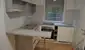- voll ausgestattete Küche mit Herd und Kühlschrank