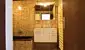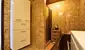 Zwar ist das Bad im Gegensatz zum Schlafzimmer nicht so großzügig bemessen, jedoch findet darin trotzdem eine Badewanne, eine Dusche und natürlich auch ein Waschbecken mit Spiegelschrank Platz.
