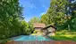 Hier wartet ein besonderes Projekt: ein gemütliches Holzhaus mit Pool, das neue Eigentümer mit handwerklichem Geschick sucht.