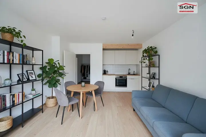 Ein geräumiger Wohn-Küche-Bereich wird aufgrund der Terrassentüre ausreichend belichtet. Ab dem frühen Nachmittag genießen Sie die Sonne auf Ihrer Terrasse und wenn es einmal zu heiß sein sollte, dann bleibt Ihnen die Nutzung der allgemein Terrasse offen.