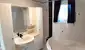 •Ein stilvolles Badezimmer in Schwarz-Weiß-Optik, ein separates WC und ein praktischer Abstellraum runden das Raumangebot ab.