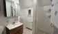 Badezimmer mit Fenster, Dusche, Waschmaschinenanschluss und WC
