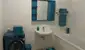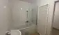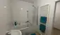 Das geräumige Badezimmer überzeugt mit einer eleganten Badewanne samt Glas-Spritzschutz, einem praktischen Handtuchheizkörper und ausreichend Platz für Waschmaschine und Trockner.