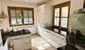 ERDGESCHOSS: Vorraum, großer offener Wohnbereich mit hochwertiger Küche und Kachelofen, schönes Bad, WC;