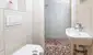 WC separat mit Dusche: Praktisch und modern mit Handwaschbecken.