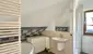 Obergeschoß mit Galerie und Blick in den Wintergarten und Küche, 2 Schlafräume plus Schrankraum (oder als weiteres Schlafzimmer nutzbar) und Badezimmer mit Whirl-Eckbadewanne, flach begehbarer Dusche, 2 Waschbecken und WC.