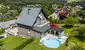 Im ersten Obergeschoss finden sich ein Schlafzimmer, ein modernes Bad mit Dusche, ein separates WC sowie eine zweite Küche. Der südseitige, lichtdurchflutete Wintergarten bietet herrliche Ausblicke in den liebevoll gestalteten Garten mit Obstbäumen und Pool. Das angrenzende Wohnzimmer und ein weiteres Schlafzimmer mit Panoramafenster runden diese Etage ab.