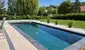 TERRASSE / POOL: Feinsteinzeugplatten / gemauerter, 7x3m Salzwasserpool mit Vorbereitung für Wärmepumpenheizung