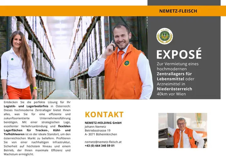 Entdecken Sie die perfekte Lösung für Ihr Logistik- und Lagerbedürfnis in Österreich: Dieses hochmoderne Zentrallager bietet Ihnen alles, was Sie für eine effiziente und zukunftsorientierte Unternehmensführung benötigen. Mit einer strategischen Lage, exzellenter Verkehrsanbindung und flexiblen Lagerflächen für Trocken-, Kühl- und Tiefkühlwaren ist es der ideale Standort, um den österreichischen Markt zu beliefern. Profitieren Sie von einer nachhaltigen Infrastruktur, Sicherheit auf höchstem Niveau und einem Betrieb, der Ihnen maximale Effizienz und Wachstum ermöglicht.