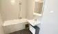 - Badezimmer mit Badewanne, Doppelwaschbecken und Waschmaschinenanschluss