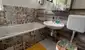 Das Badezimmer verfügt über Wanne und WC.