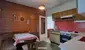 Das Obergeschoss ist über einen zentralen Vorraum erschlossen. Hier befinden sich ein Büro mit großem Fenster, ein Schlafzimmer mit Zugang zum Balkon und ein angrenzendes Wohnzimmer mit weiterer Sitzgelegenheit und ebenfalls Balkonzugang. Eine voll ausgestattete Küche mit Essbereich sowie ein Badezimmer mit Dusche und WC komplettieren die Etage.