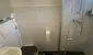 Badezimmer/Fliesen an Boden und teilweise an Wand (Handwaschbecken, Dusche, WC)