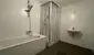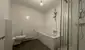 Das Badezimmer ist mit einer Badewanne, einem WC sowie einem Waschmaschinenanschluss ausgestattet. Ein zusätzlicher Abstellraum, der bequem von der Küche aus zugänglich ist, sorgt für extra Stauraum.