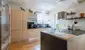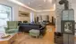 Wohlfühlambiente genießt man im großzügigen Wohnbereich mit offener Küche mit Kochinsel und Essplatz. Der zentrale Holzkaminofen ist nicht nur ein schöner und angenehmer Blickfang, zusätzlich liefert er an Übergangstagen und romantischen Abenden wohlige Wärme. Direkt vom Wohn-Essbereich gelangt man auf die wind- und wettergeschützte, teilüberdachte Terrasse.