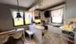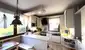 Über den zentralen Eingangsbereich gelangt man im Erdgeschoss in die Garderobe, eine Gästetoilette sowie in das großzügige, offene Wohnzimmer. Von hier führt der direkte Zugang auf die Terrasse und in den Garten. Ein moderner Kamin sorgt für wohlige Wärme und ein stimmungsvolles Ambiente. Direkt daneben befindet sich die funktionale, gut ausgestattete Küche mit Blick ins Grüne.