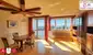 -Wohnküche mit Panoramafenstern und Zugang zur Loggia
