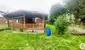 Der Garten ist eben und vollständig eingezäunt und wartet mit seinem Gartenhäuschen und viel Grün auf.