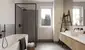 Hochwertige Badezimmerausstattung mit 60x60cm Feinsteinzeug-Fliesen