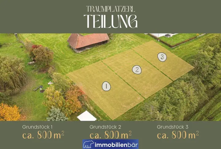 Hier wird das GST Nummer 2 mit einer Fläche von ca. 800 Quadratmeter (noch nicht vermessen - Teilungsplan vorhanden) angeboten.