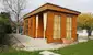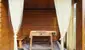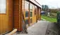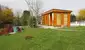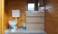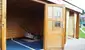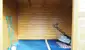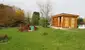 Das Gartenhaus ist eingeteilt in einen Lagerraum; ein WC mit Waschbecken inkl. Kanalanschluß und einen überdachten Sitzplatz.