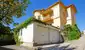 . Es ist ein annähernd quadratischer Bau mit kreuzförmig hervortretenden Mittelachsen mit 2 Hauptgeschossen mit massiven Außenwänden und solidem Fundament. Die Nutzfläche inkl. 2 Garagen ist 1035 m2 plus 570 m2 Außenfläche.