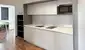 Die Teeküche ist von 3 Seiten zugänglich. Sie ist mit Kühlschrank, Mikrowelle, kleinem Ceranfeld, Geschirrspüler und Spüle ausgestattet.