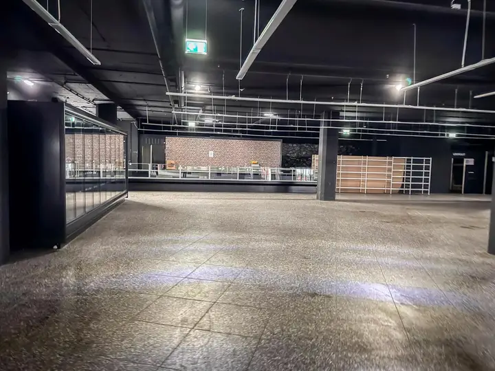 Die Untere Ebene und ein Teil des 1. OG mit insgesamt ca. 1.427,17m² wurde zuvor als Supermarkt genutzt. Die komplette Ausstattung ist noch vorhanden – einschließlich Kühl- und Gefrierräume, Kühlschränke sowie Frischetheken.