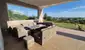 Der Wohnbereich überzeugt mit stilvollen Holzelementen; ein dekorativer Kamin sorgt am Abend für eine gemütliche Atmosphäre. Eine Barzeile an der Küche schafft zusätzliche Flexibilität, und eine gemütliche Sitzecke lädt mit bequemen Ledersesseln zu entspannten Stunden mit traumhaftem Ausblick über die Landschaft ein.