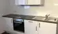 In die Wohnung gelangt man mittels Codeeingabefeld. Die Einbauküche befindet sich im Wohn/Essbereich.