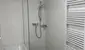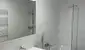 Das Bad eine Walk-in Dusche mit einer Glastrennwand und eine Badewanne, ein Doppelwaschbecken sowie einen Waschmaschinenanschluss.