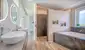 Ein separater Zugang führt ins private Refugium mit bis in den Giebel offenen, lichterfüllten Wohnraum, modernem Sichtkamin und skulpturaler Treppe. Perfekt für eine schicke Loungezone, die an den großzügigen Essbereich anschließt und mit der Qualitätsküche inkl. Frühstücks-Bar abschließt. Für die beiden Schlafzimmer steht ein neuwertiges Bad mit Walk-In-Regendusche bereit. Unterm Dach ist der Masterbereich mit privater Wellness-Oase inkl. Ankleide angesiedelt. Das Dachstudio mit herrlicher Dachterrasse kann auch als Homeoffice/Bibliothek oder zusätzliches Schlafzimmer verwendet werden. Aus dem Terrassengarten wird im Nu ein gemütliches Grillplätzchen für Sie und Ihre Gäste! EA iA.