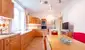 Das Erdgeschoss besticht durch eine großzügige Raumaufteilung: Ein einladender Flur, eine große Küche mit gemütlicher Essecke, ein Wohnzimmer mit Kachelofen und Sichtfenster, ein Zimmer (ideal als Homeoffice, Gäste- oder Schlafzimmer nutzbar), eine Toilette sowie ein Badezimmer mit Badewanne, Dusche und Waschtischverbau.