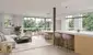 Vom Erdgeschoss abwärts leitet die Treppe in einen geräumigen Atriumbereich, der durch Lichthof und Tageslicht-Bad nichts von seinem Wohncharakter einbüßt.