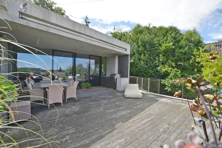 Diese moderne Villa begeistert auf drei Ebenen mit maßgefertigten Details und einem außergewöhnlichen Raumgefühl. Highlights wie ein beheizter Outdoor-Pool mit Gegenstromanlage, ein privater Wellnessbereich und ein Outdoor-Kochplatz schaffen exklusive Rückzugsorte – innen wie außen.