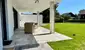 Die große, überdachte Terrasse und die weitläufige Rasenfläche bieten viel Raum für Familienleben und geselliges Beisammensein.