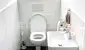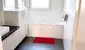 Badezimmer mit Badewanne, Waschbecken und Fenster; separates WC mit Handwaschbecken und Fenster