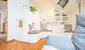 Die Wohnung bietet zwei Schlafzimmer und einen ca. 50 m² großen Wohnraum. Das hochwertige Tageslichtbadezimmer ist mit einer Dusche sowie Badewanne ausgestattet. Im Untergeschoss befinden sich drei Wäschetrockenräume sowie ein Fahrradraum. Zusätzlich gibt es dort einen Gemeinschaftsraum für Groß und Klein, der durch eine Lichtkuppel erhellt wird.