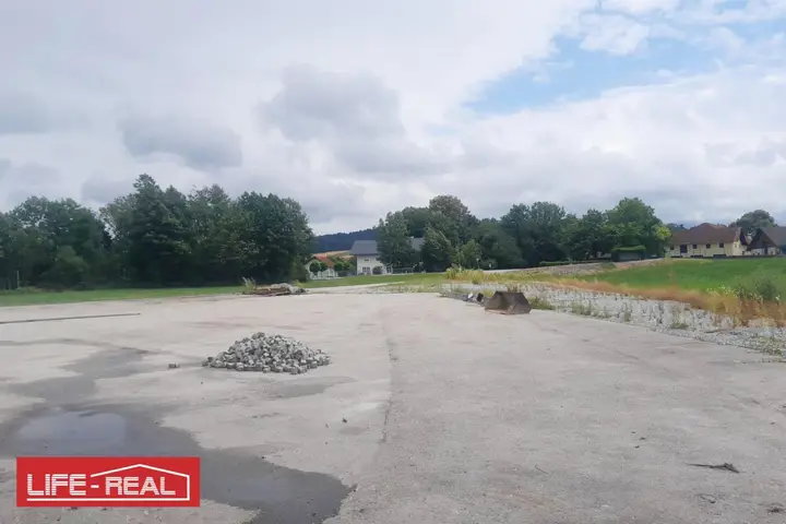 Das Gewerbegrundstück liegt zwischen Ried im Innkreis und Braunau, direkt an einer Bundesstraße. Laut Auskunft des Eigentümers sind ca. 2.700 m² asphaltiert und der Rest mit Bruchmaterial befestigt. Die Anschlüsse wie Kanal und Strom befinden sich an der Grundstücksgrenze.