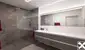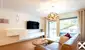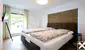 Das Badezimmer bietet mit einer begehbaren Regendusche, einer Glastrennwand und einer Fußbodenheizung besonderen Komfort. Elektrische Raffstores sorgen für angenehmes Licht, während die Kombination aus Fernwärme und Solarthermie ein effizientes Heizsystem garantiert.