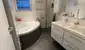 Das Badezimmer mit Fenster, Dusche und Badewanne ist äußerst modern und lädt zum Verweilen ein.