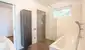 Das Badezimmer ist mit Doppelwaschbecken, Badewanne und bodenebener Dusche ausgestattet. Das separate WC mit Dusch- und Föhnfunktion sowie Handwaschbecken bietet zusätzlichen Komfort.
