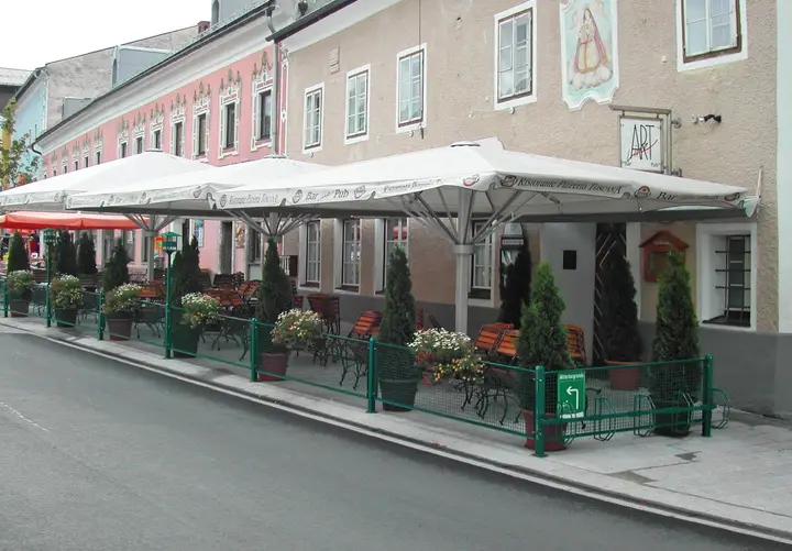 Das Restaurant ist vollständig eingerichtet und betriebsbereit, inklusive aller Gastrogeräte, sodass ein sofortiger Start möglich ist. Nordseitig zum Marktplatz befindet sich ein einladender Gastgarten, der in den Sommermonaten für zusätzliche Sitzplätze sorgt. Das Erdgeschoss beherbergt das Restaurant mit Küche, Technik-, Lager- und Kühlräumen, ein geschmackvoll eingerichtetes Stüberl mit flexibler Trennwand und historischer Tramdecke sowie eine Bar/Lounge für die Abendgastronomie. Eine barrierefreie WC-Anlage mit Wickeltisch ist ebenso vorhanden.