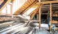 Im Obergeschoss befinden sich ein Lagerraum, ein Vorraum sowie zwei Abstellräume – einer davon bereits mit Wasser- und Abwasseranschluss. Über eine interne Stiege gelangt man in das großzügige, bislang ungenutzte Dachgeschoss mit einer Fläche von rund 400 m². Der weitläufige Dachraum beeindruckt durch seine imposante Raumhöhe und die historische Dachkonstruktion, ein handwerkliches Meisterwerk aus vergangenen Jahrhunderten.
