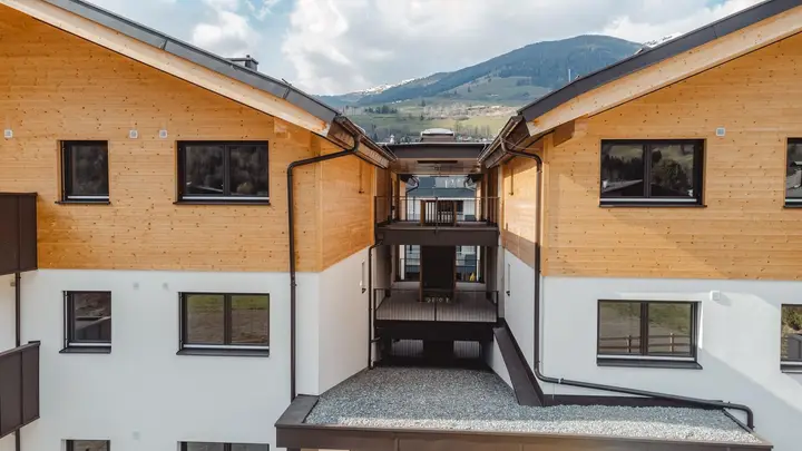 Moderne 2-Zimmer-Eigentumswohnung mit Balkon in Mittersill, direkt an der Hallenbadstraße 36. Die 74,87 m² große Neubauwohnung im ersten Stock eines Massivholzbaus wurde 2025 fertiggestellt und ist sofort verfügbar. Die Wohnung verfügt über einen 9,05 m² großen Balkon und ist Teil eines nachhaltigen Wohnprojekts mit insgesamt 18 Eigentumswohnungen.