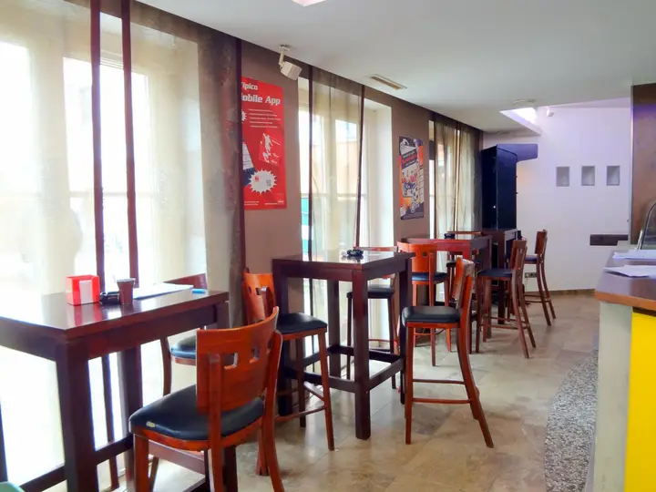 Im Erdgeschoss befindet sich ein heller Geschäftsbereich mit Bar und anschließendem Gastgarten, der laut Information der Gemeinde nach Absprache zur Verfügung gestellt werden kann.